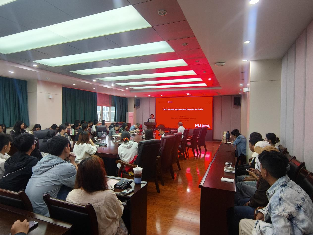 近日,应我院冯宗云教授邀请,澳大利亚技术科学与工程院院士、西澳农业与食品部首席科学家、莫道克大学教授、国际作物基因组学领域领军学李承道教授莅临我校,作了题为“Crop Genetic Improvement beyond the SNPs”的学术报告。李承道教授围绕啤酒大麦产量和麦芽品质提升的基因组学基础,系统梳理了其团队在该领域多年的研究成果。从基因组学角度深入剖析了大麦产量性状及麦芽品质性状形成的分子机理与遗传改良,重点介绍了大麦种质资源创新、基因组精细解析、泛基因组构建等方面的最新进展。育成的包括Baudin在内的10余个国际啤酒大麦主栽品种,构建了优质啤酒大麦高效育种体系,不仅体现了理论研究的深度,也彰显了育种实践中的重大突破,为作物遗传改良提供了重要借鉴。他领导的团队破解了啤酒大麦育种的两大世界难题,一是产酒量和产酒效率同步提升,二是抗穗发芽和高麦芽品质有机结合。其深厚的学术造诣与开阔的科研视野,为在座师生带来了深刻启发,也为未来双方进一步合作奠定了坚实基础。