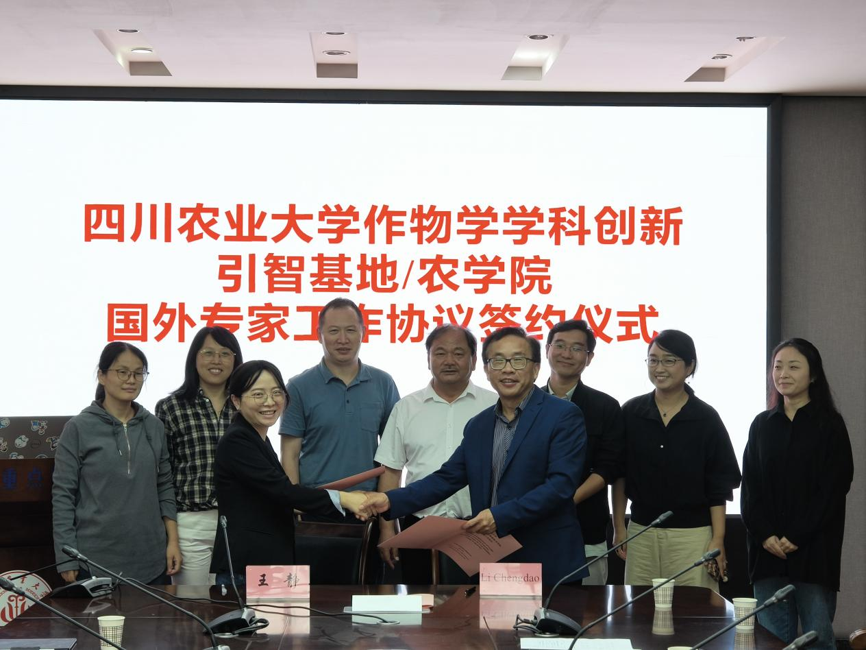 报告结束后,农学院院长王静教授代表四川农业大学作物学学科创新引智基地与李承道教授签署了国外专家工作协议。此次合作将进一步拓展四川农业大学在作物学科研与人才培养方面的国际视野,为我校作物学学科建设与国际科研合作注入新动力。